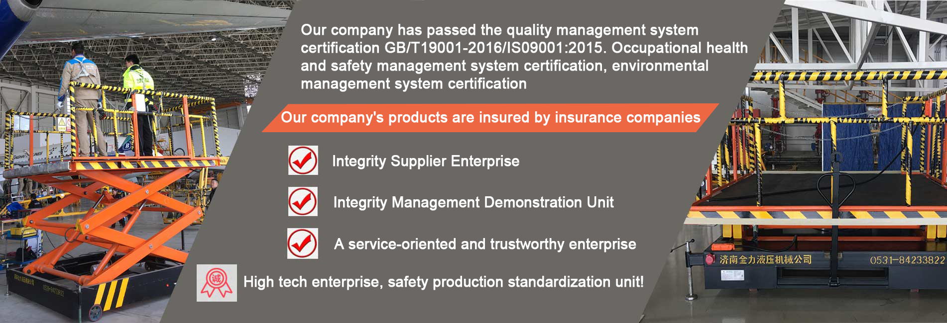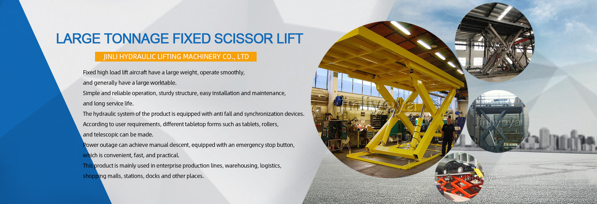 Jinan Jinli Hydraulic Machinery Co., Ltd. was established in 2004 and is located in Jiyang District, Shandong Province, known as the hometown of lifting platforms in China. It covers an area of 15000 square meters and has a registered capital of 50 million yuan.In recent years, the company has been rated as