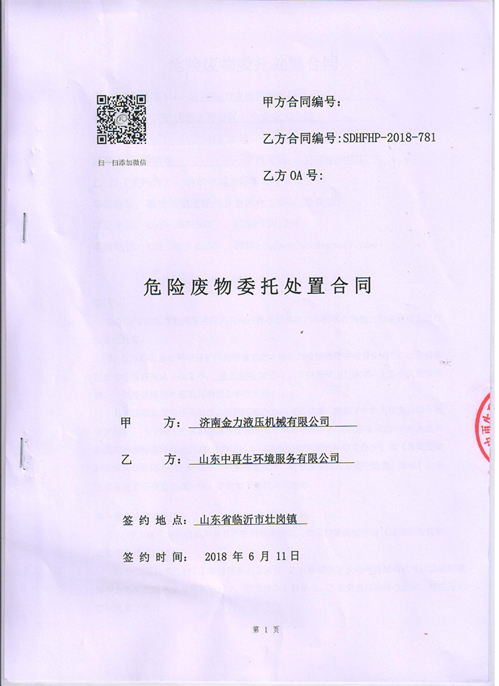 根據(jù)《建設(shè)項目竣工環(huán)境保護(hù)驗收暫行辦法》(國環(huán)規(guī)環(huán)評[2017]4號,2017年11月20日),特委托貴公司開展對濟(jì)南金力液壓機(jī)械有限公司新建年產(chǎn)2000 臺立體停車庫項目的驗收監(jiān)測工作。