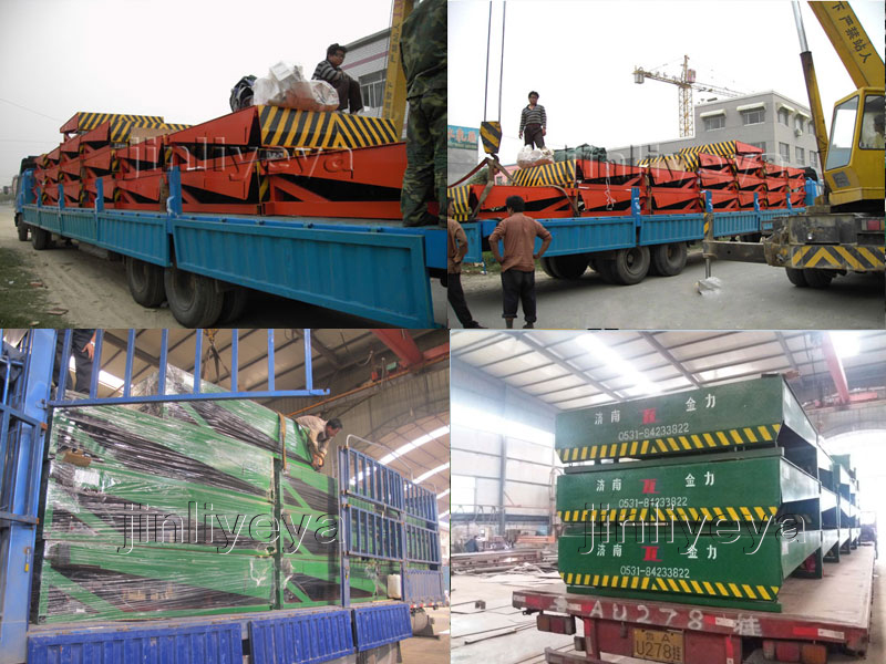 5、工作完畢,松開掛鏈,壓動(dòng)手動(dòng)泵,使橋面脫離車體,貨車開走。