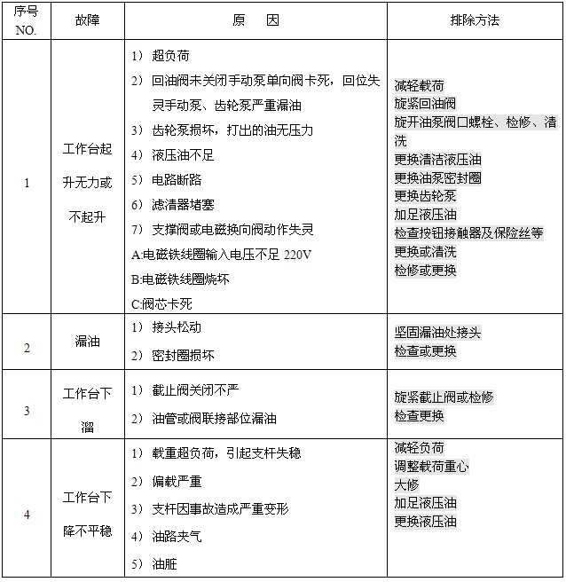 4、平臺(tái)空運(yùn)行1-3次后方可載荷作業(yè)。