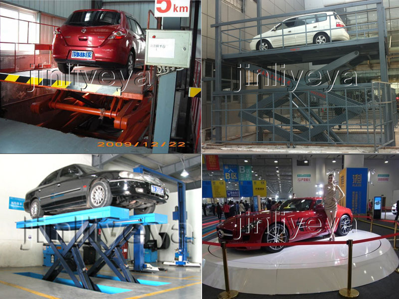 剪叉式汽車舉升機主要應用于汽車4S店、汽車維修廠、立體停車庫、貨運碼頭等場所。由于其結(jié)構(gòu)簡單,同步性好,一般常用作四輪定位儀的平臺。