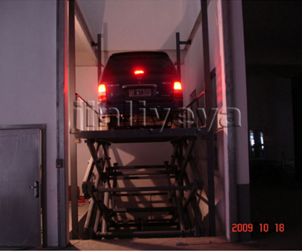 升降機安裝在地坑內(nèi),下降到低高度時,工作臺面與地面持平。
